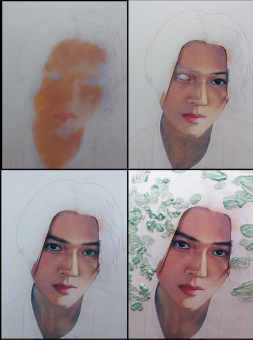 制作過程です✍️ #ばーちーチャレンジ という企画で描きました😌 背景はムラ消しで少しエアブラシのせてます。 全ての素材の表現が大変でした💦 時間かかったけど、諦めず、理想の形に近い仕上がりになったと思います。 頑張ったー❗💪😊✨