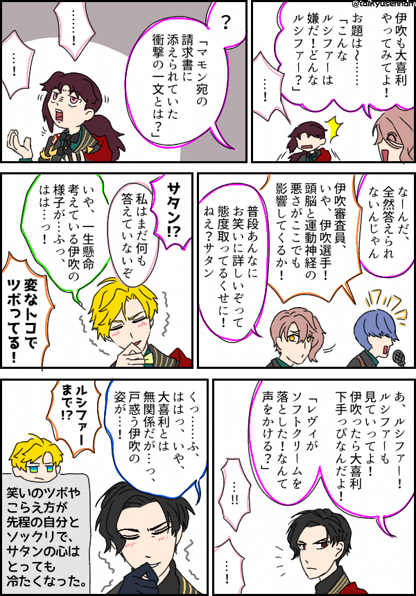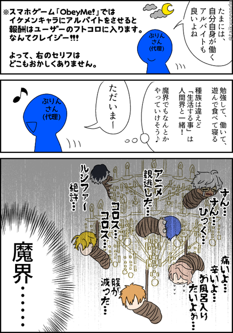 伊吹の功績 ⚠️創作MCが失礼 ⚠️I used Google translation. セリフだらけ漫画になっちゃった… #おべいみー #obeyme #obeymefanart #obeymemc #obeymeasmodeus #sorrydeus