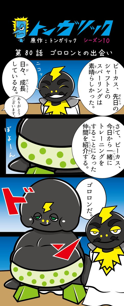 今晩、4月3日以来、全然更新できていなかった『トンガリック』の最新話をアップします。 ピーカスのトレーニングの日々の続きからとなります。 #トンガリック #4コマ漫画 #漫画が読めるハッシュタグ #漫画好きさんとつながりたい