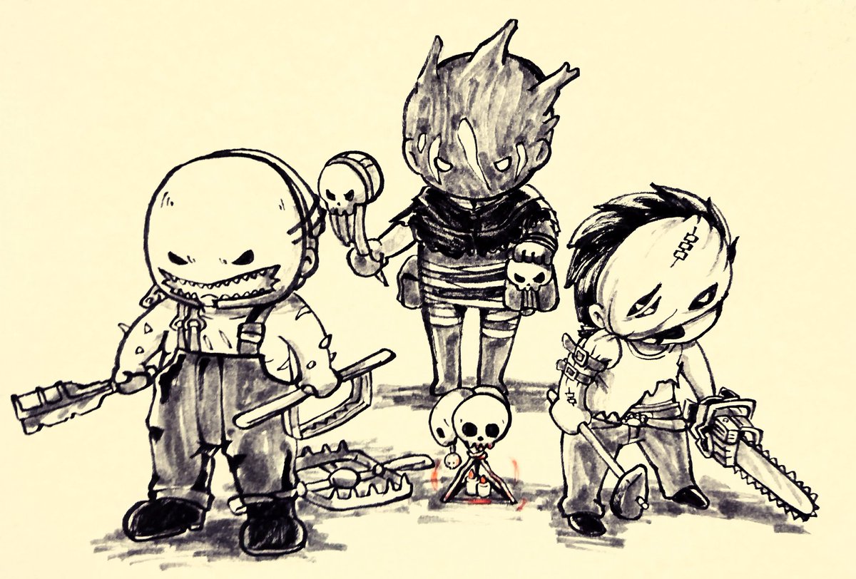 🎉祝! DbD7周年🎉(大遅刻) おめでとうございます~🥳 今年はキラー達を家紋風のマークで描いてみました! どのマークが何のキラーをモチーフにしたか伝われば嬉しい… #DbD7周年 #dbdfanart #DbDアート