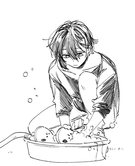 230 1591 スリッパを手洗いするまゆずみかい #灰画 23/04/12 16:13