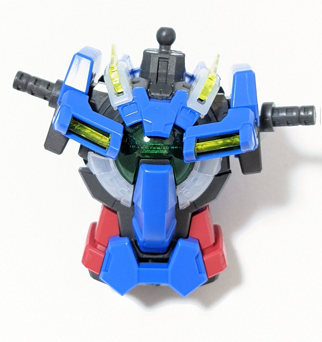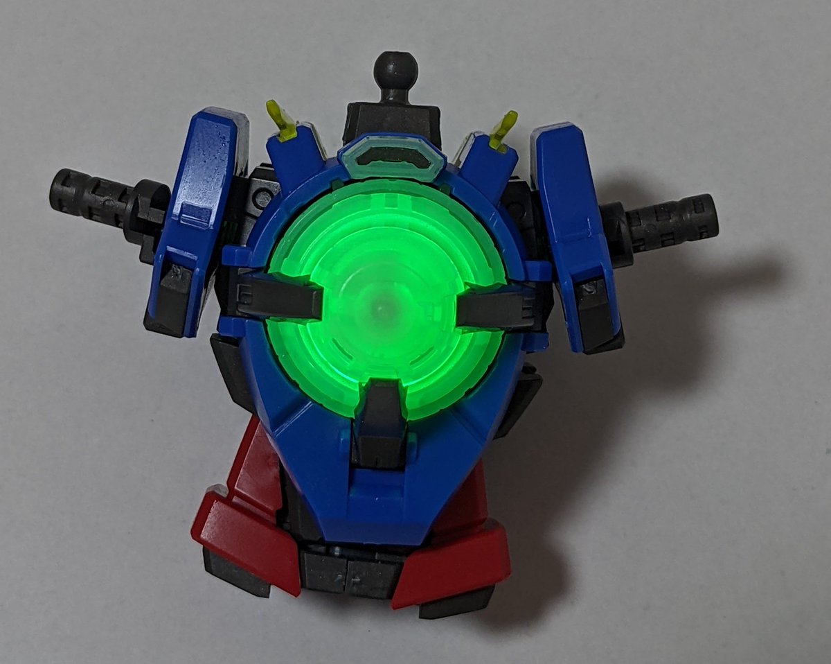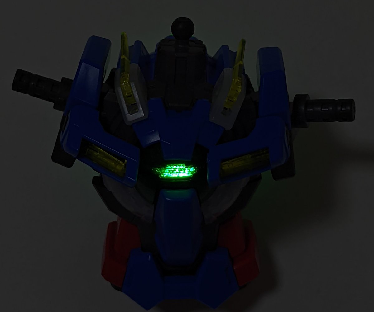上半身だけ作り終わりました 試しにLEDライトを付けたらクリアパーツなので綺麗に光り文字が浮揚ってカッコいい! 完成が楽しみー #ガンプラ #ガンプラ好きな人と繋がりたい #ガンプラの画像貼るとRTされると聞いて #ガンプラシンプル改造