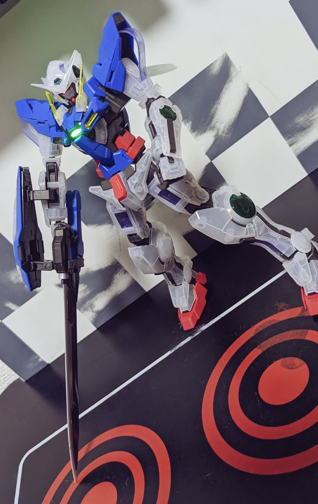 ラストワンのエクシア完成しました! カッコよくLEDライト付けると余計にカッコいい! 置き場が無く何処に置こう? #ガンプラ #ガンプラ好きと繋がりたい #ガンプラの画像貼るとRTされると聞いて