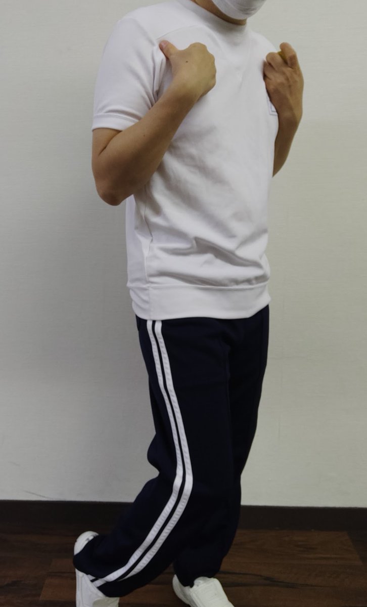 0 8 白の半袖体操服にライン入り紺のトレパン、シャツは外に出した状態で。 ちょっと中学生っぽい。 #体操服 #トレパン #自撮り #selfie #cosplay 22/02/25 12:00