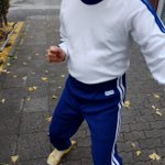 0 7 花紺のライン入り長袖丸首体操服に花紺のトレパンで都会の歩道に立つ様子。 #体操服 #トレパン #自撮り #selfie #cosplay 22/02/26 12:00