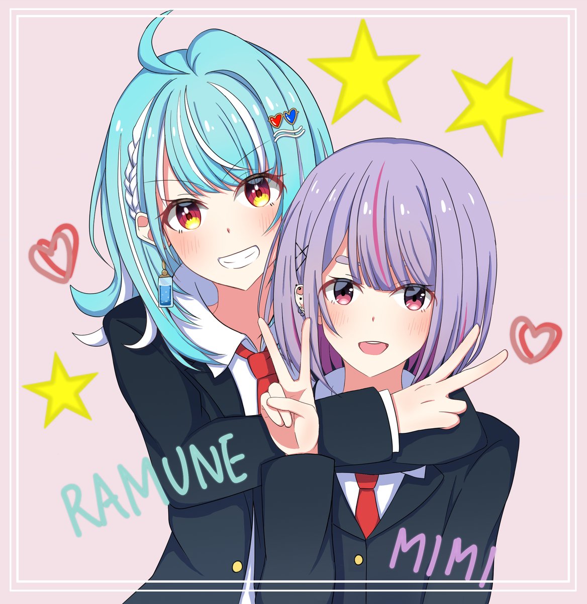 学パロ⑫ 仲良し二人組! #らむねはいか画 #ミミ画