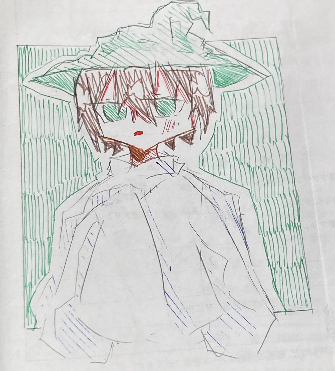 #しろっぽ 初描き失礼します! あくびしてるの描こうとしたらなんかおかしくなった 目失敗した…