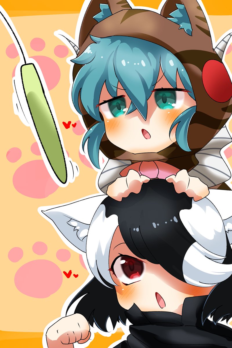 今日は #猫の日 です!!!!!! ということで、にゃんにゃんしてるツチノコちゃんとブラックバック団長を描きました!!!!! #けものフレンズ
