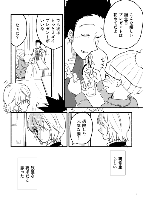 以前ゴンお誕生日アンソロにお呼ばれ頂いた時の1P漫画です。主催者様から再録の許可を頂いたのでお誕生日に合わせて上げさせて頂きました ってか読み返したら分かり辛いね!パームとデートしてる時は13歳になってるのにミスってるって話です反省!OMEDETO~!! #ゴン生誕祭2022 #ゴン誕生祭2022