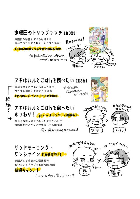 アキはハルとごはんを食べたいおかわり!第二巻発売中です! 書店特典や映画情報などはこちらにまとめております 👉takeshobo.co.jp/sp/akiharu_oka… 刊行企画もありますので是非ご参加ください よろしくお願いいたします!