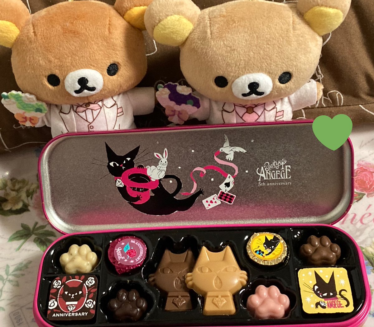 Happy Valentine‼︎ うちにいたリラックマに代理をお願いしてみた。 本命チョコ選ぶ楽しかったな。 中も外もネコちゃんが可愛すぎ #オウ画