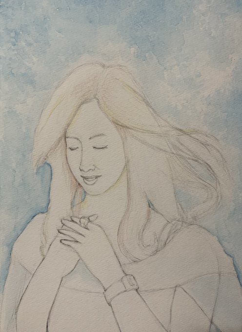 やっと塗り始めた。 11月中の完成を目指す…! #森口博子 #水彩画