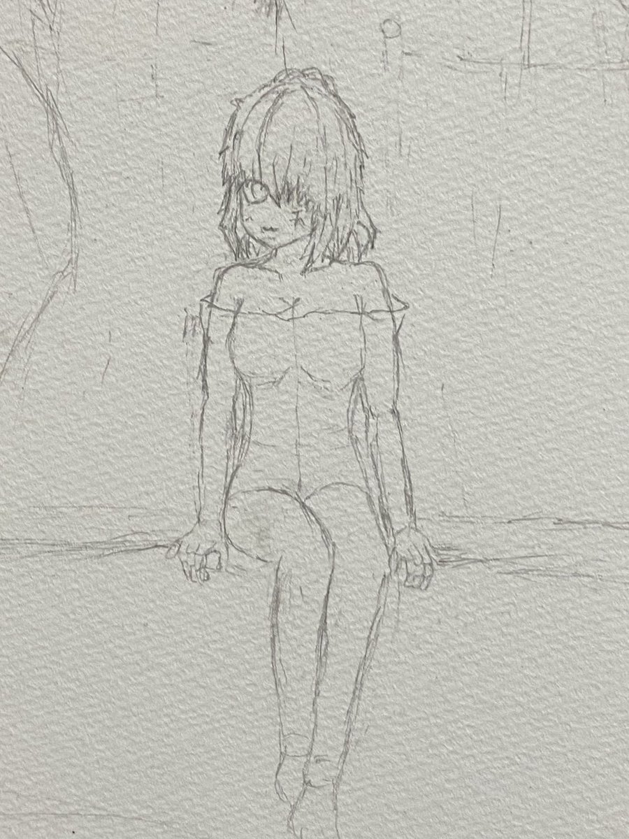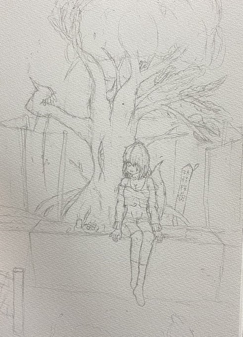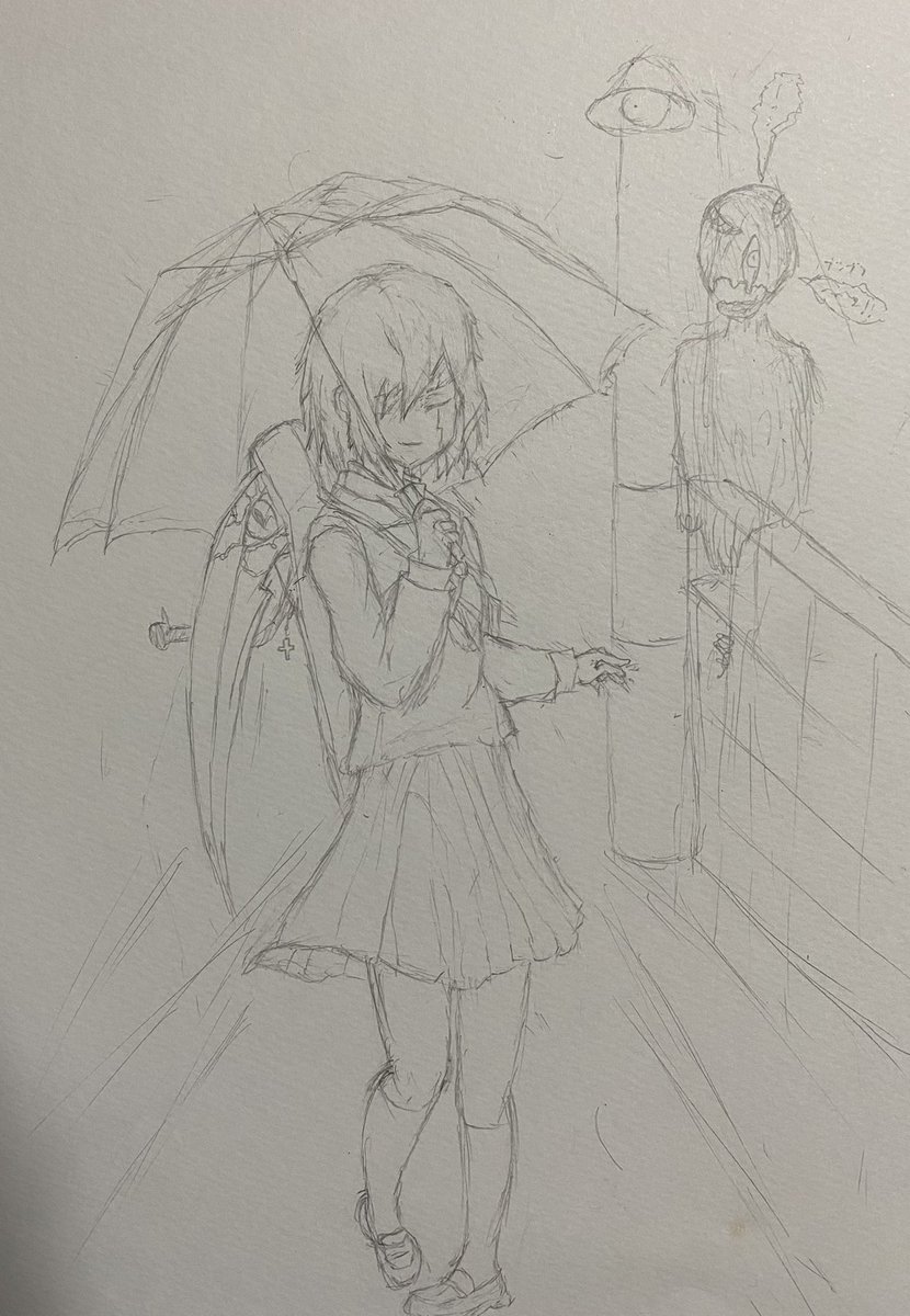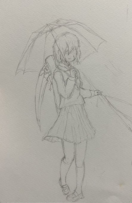 落書きターイム3 奈落 幽霊(仮)を仮描きしました!さらに改良します 「こんな夜更けにしかも雨の日に何してるの?え?あそこにオバケがいるって?それなら手繋いであげるから目つぶって一緒に行こうか♪大丈夫だよ、多分」 #オリキャラ #絵描きさんと繋がりたい