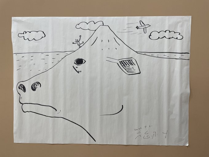 2 59 もうすぐイベント開始。 昨日見た牛と八丈富士を描きました。 22/05/21 09:54