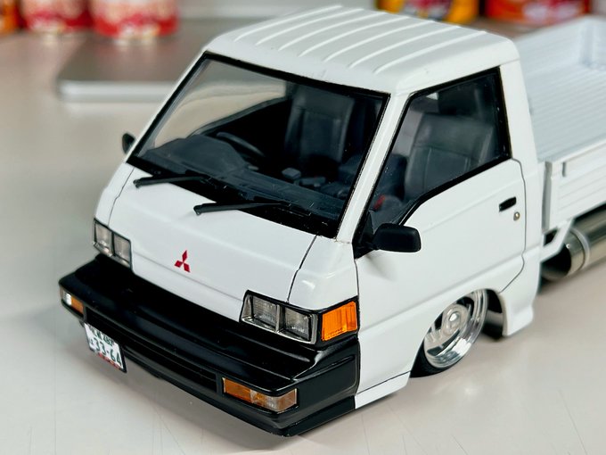 デリカトラックは意外とチョロいのでオススメです! いま普通にプラモ屋さんで売っているアオシマのデリカスターワゴンの前半分をまんま使うだけ。 これはチャレンジする価値アリ!? そこまで行ったら、あとはお好みのスタイルに仕上げてみてくださ〜い♪ #アオシマ