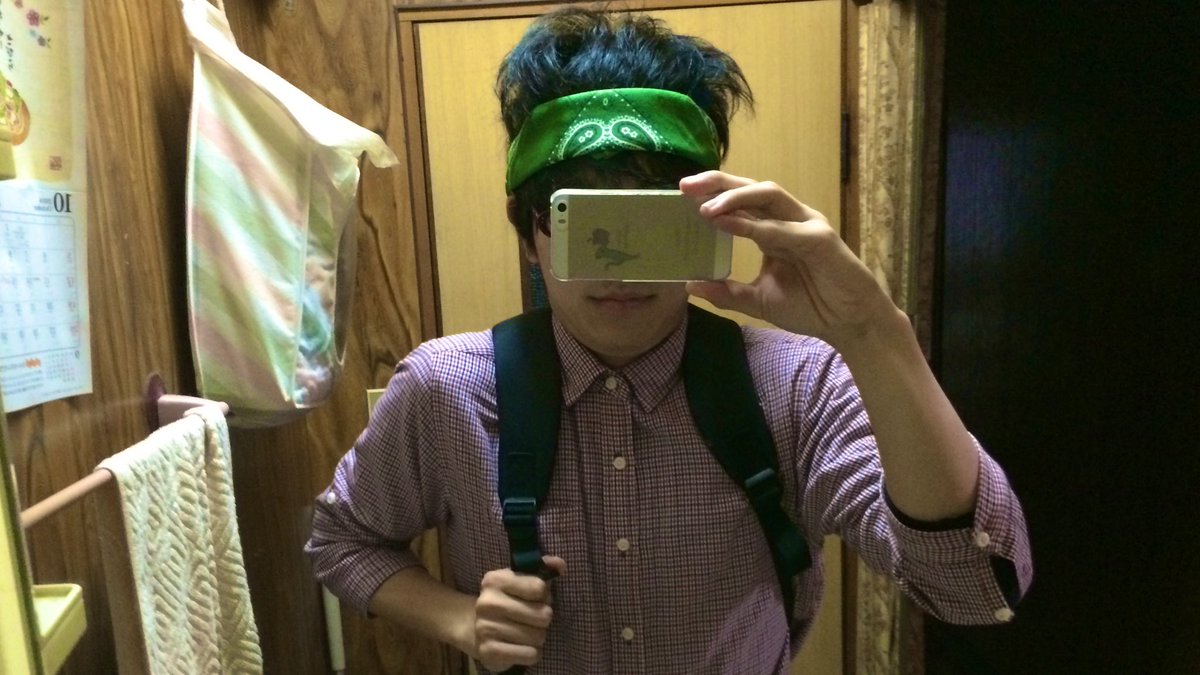 家にいる方がお顔キレイキレイしてるのに、オタクで外出する時赤チェックシャツにバンダナ巻いて寝癖のまま出かける癖治したい。 (25歳男性独身実家暮らし長男癖毛低身長アニメアイドルオタクガリ男) #宅コス