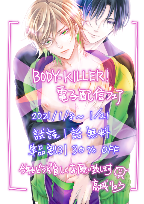 本日からCharaコミックス「BODY-KILLER!」の電子配信フェアが始まります!電子限定描き下ろしも有りますのでお得なこの機会に是非どうぞ! bookshelf.chara-info.net/comics/21605/