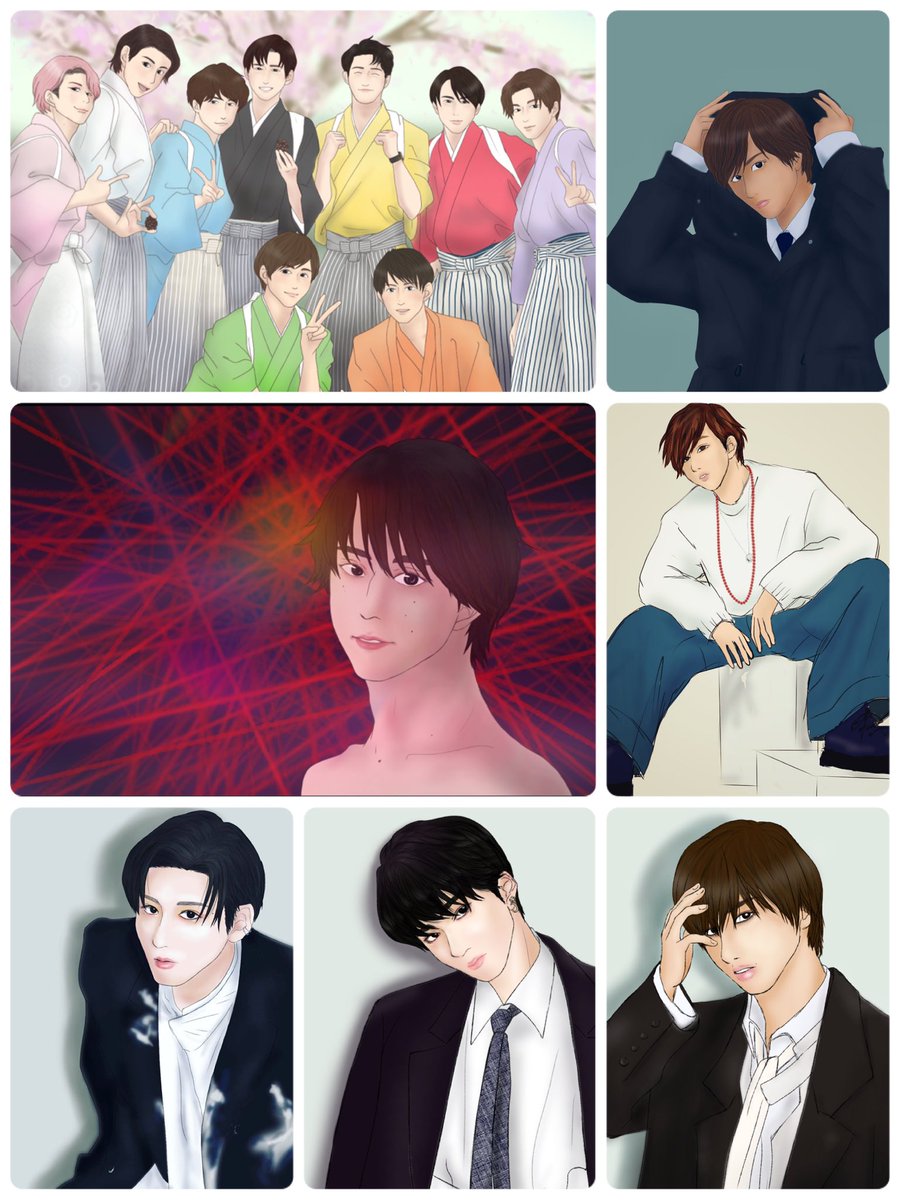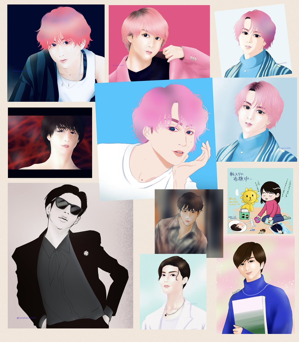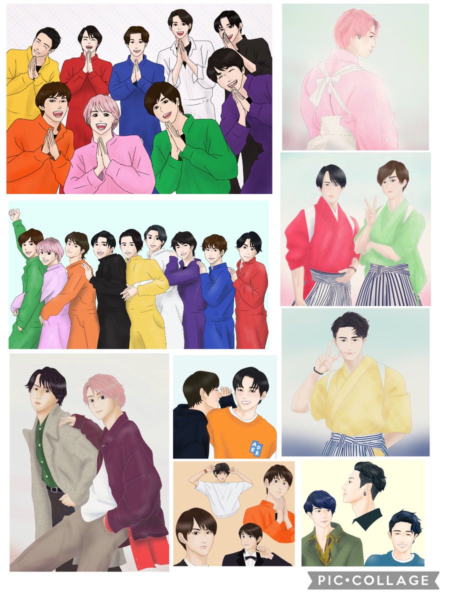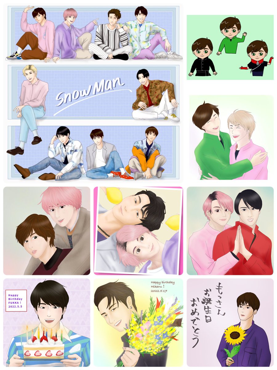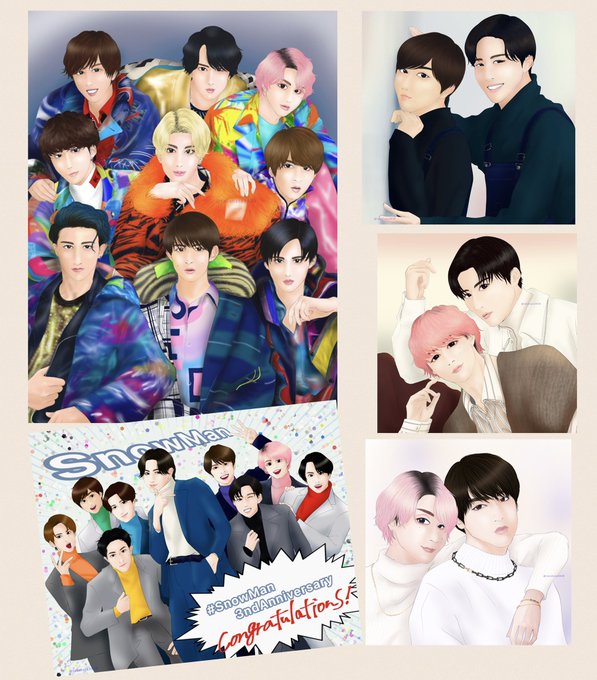 3月絵まとめ!たくさん描いたなぁ〜! ラウちゃんたくさんいいねいただいてびっくりしました。 個人的には治安の悪いだてあべとcheerのしょっぴーがお気に入り。 ブラザービートの派手衣装も時間かかったけど楽しかったな。 #今月描いた絵を晒そう #SnowManイラスト
