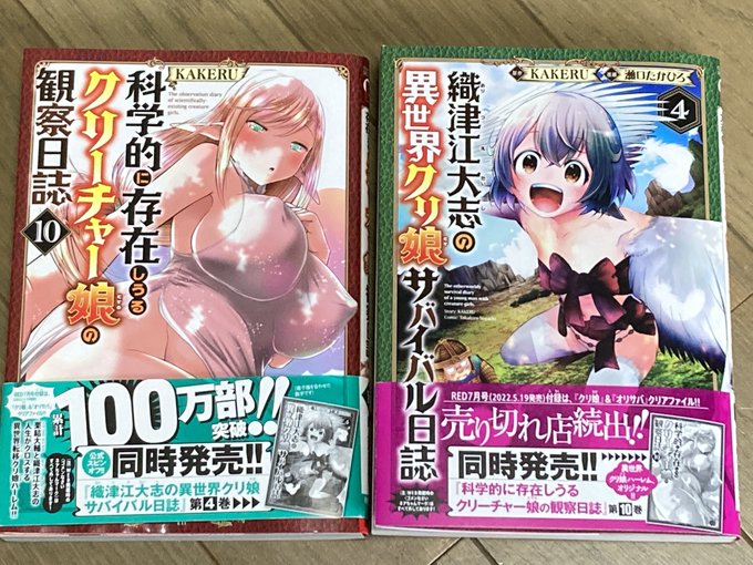 「科学的に存在しうるクリーチャー娘の観察日誌10」と、そのスピンオフ「織津江大志の異世界クリ娘サバイバル日誌4」は19日に同時発売です。織津江フォロワーは忘れずによろ。 amzn.to/3FE16er