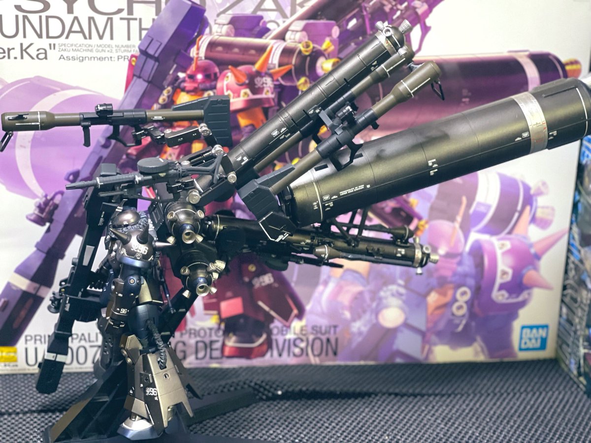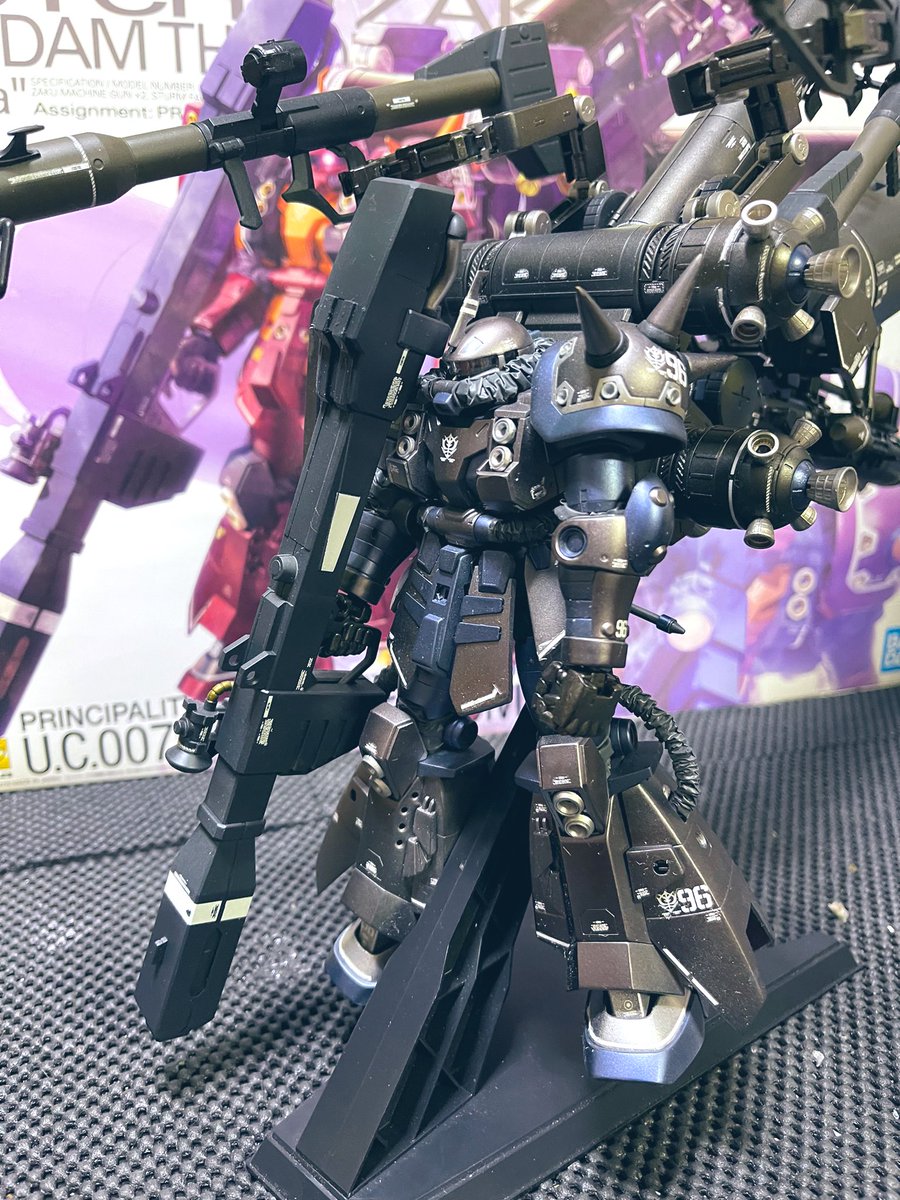 MGサイコ・ザク完成しました 設定はダリルのサイコザクの兄弟機をイメージして作中の赤く派手なサイコザクとは打って変わって無骨なメカメカしさを目指しました 初心者なので粗さ汚さが目立ちますが心は込めたのでイイネ👍コメントくれたら尻尾振って喜びます #ガンプラ #ガンプラ好きと繋がりたい