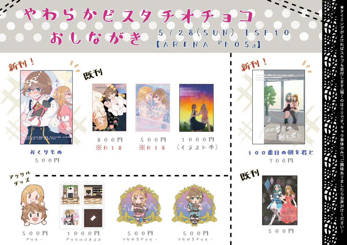 27 39 改めて #ISF10 のお品書きです! 【F-05】 やわらかピスタチオチョコ(ゆうへいや) 新刊:メメント後のまつみや本🌟本文31P ¥700 無配:メメントまつり漫画 🎀 4P 既刊もあります🙌 ※新刊サンプルはツリーにて⬇️ ※新刊交換は辞退させて頂きます🙇♀️ りりさんのかおりお新刊・既刊・グッズもあります! 23/05/22 23:25