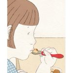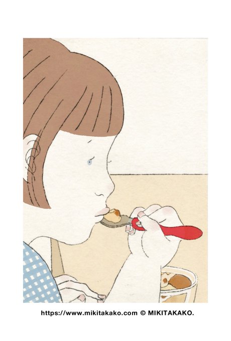 こども「Monday Coffee」です。 ディカフェとか色々考えてほろ苦カラメルプリンにしました。展示作品と併せてお楽しみください。 #イラスト #illustraion twitter.com/takakoillust…
