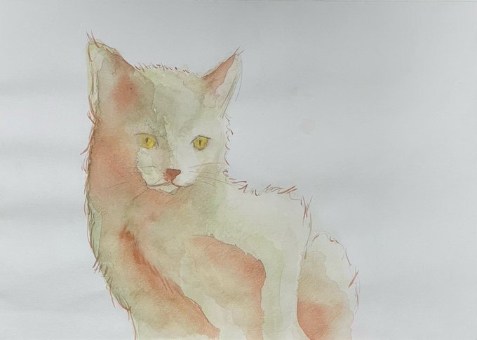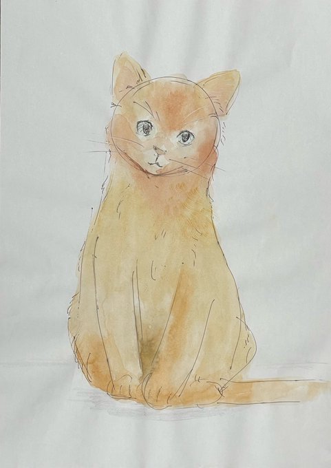 水彩画の猫です。少し色鉛筆も使用しています。 水彩画特有の『にじみ』がうまく出た為か、他の絵を描く方々からも評判が良かったです。 使用する色数が少なくても、絵作りが出来る例として生徒さんたちに描いた作例です。 水彩の表現については、改めて追求中なので今後も精進ですね。 #絵 #水彩 #猫