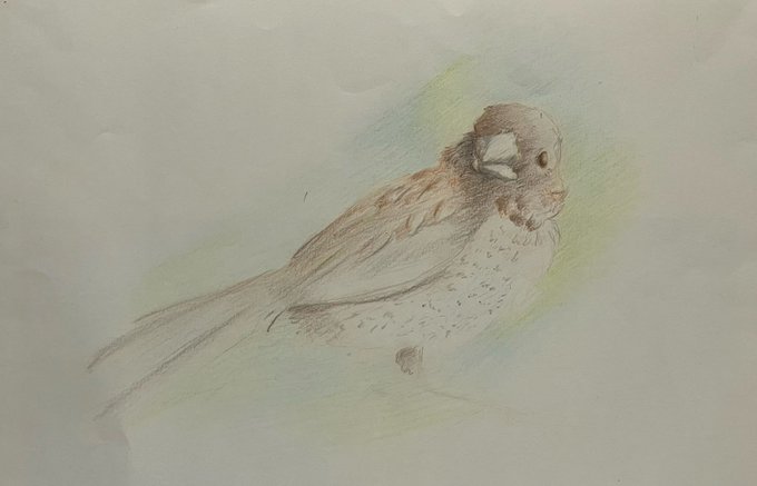 0 4 朝日森天満宮さまの御朱印、沢山の反響ありがとうございます。 今日は色鉛筆画を。 レッスン用の絵です。(カラーケント紙に色鉛筆) 描き込むべきところと、そうでないところを作り、どこを見て欲しいか明確にする説明をしました。学術的な絵と芸術としての絵の違いになりますね。 #絵 #色鉛筆 #鳥 22/05/01 17:51