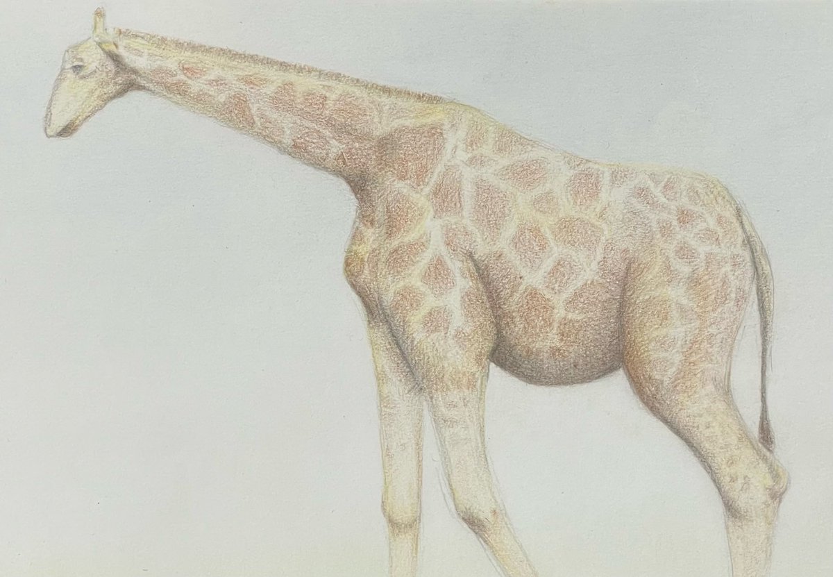 1 12 今日もレッスン画です。(画用紙に色鉛筆) 色鉛筆の使い方を生徒さんに説明する為に描いたキリンです。 色の重ね方、鉛筆の角度を変えることでの表現の違いなどを解説しました。 身体の部分ごとに、模様の大きさが変わることに注目するとキリン『らしさ』が出やすいと思います。 #絵 #色鉛筆 #キリン 22/05/08 20:26