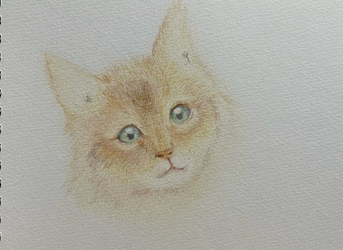 色鉛筆の猫です。 今日は不透明水彩絵具で、別のモチーフを描いていたのですが思う様に筆が走らず、気分転換に猫を描きました。 写真の撮り方が悪いのか、何度撮り直しても暗くなってしまいいつもより色味が再現されていません。普段通りのはずなのですが、作品用では無いのでまぁ…。 #絵 #猫 #色鉛筆