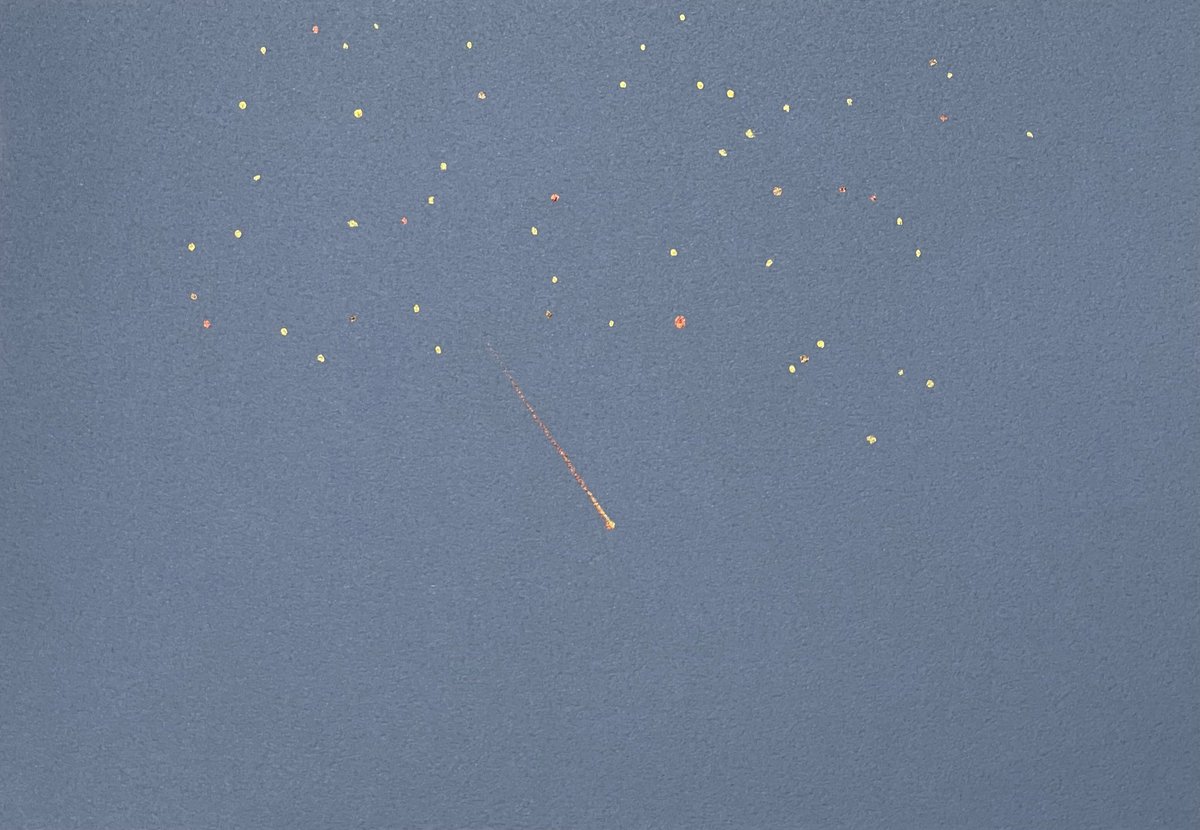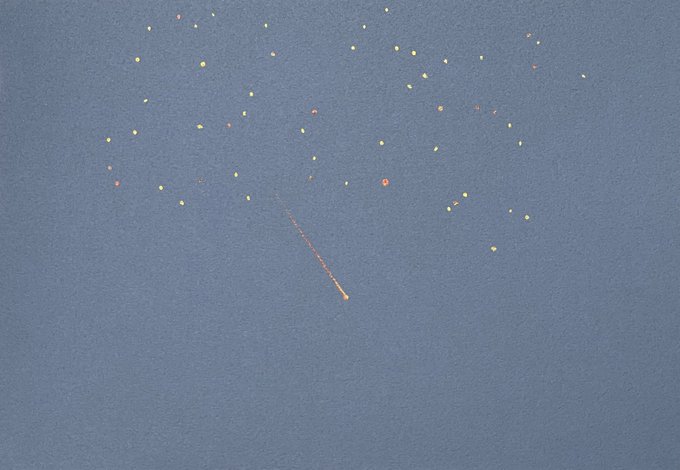 0 30 オリオン座流星群、2日程夜空を眺めましたが見ることが出来なかったので、描いてみました。(和画用紙藍鼠色にアクリル絵具) 絵具は和色の銅とブロンズ、ライトゴールドの三色を使い変化を持たせて。💫 落描きですが同じく見られなかった方、良かったらご覧ください。 #絵 #オリオン座流星群 #落描き 22/10/23 21:18