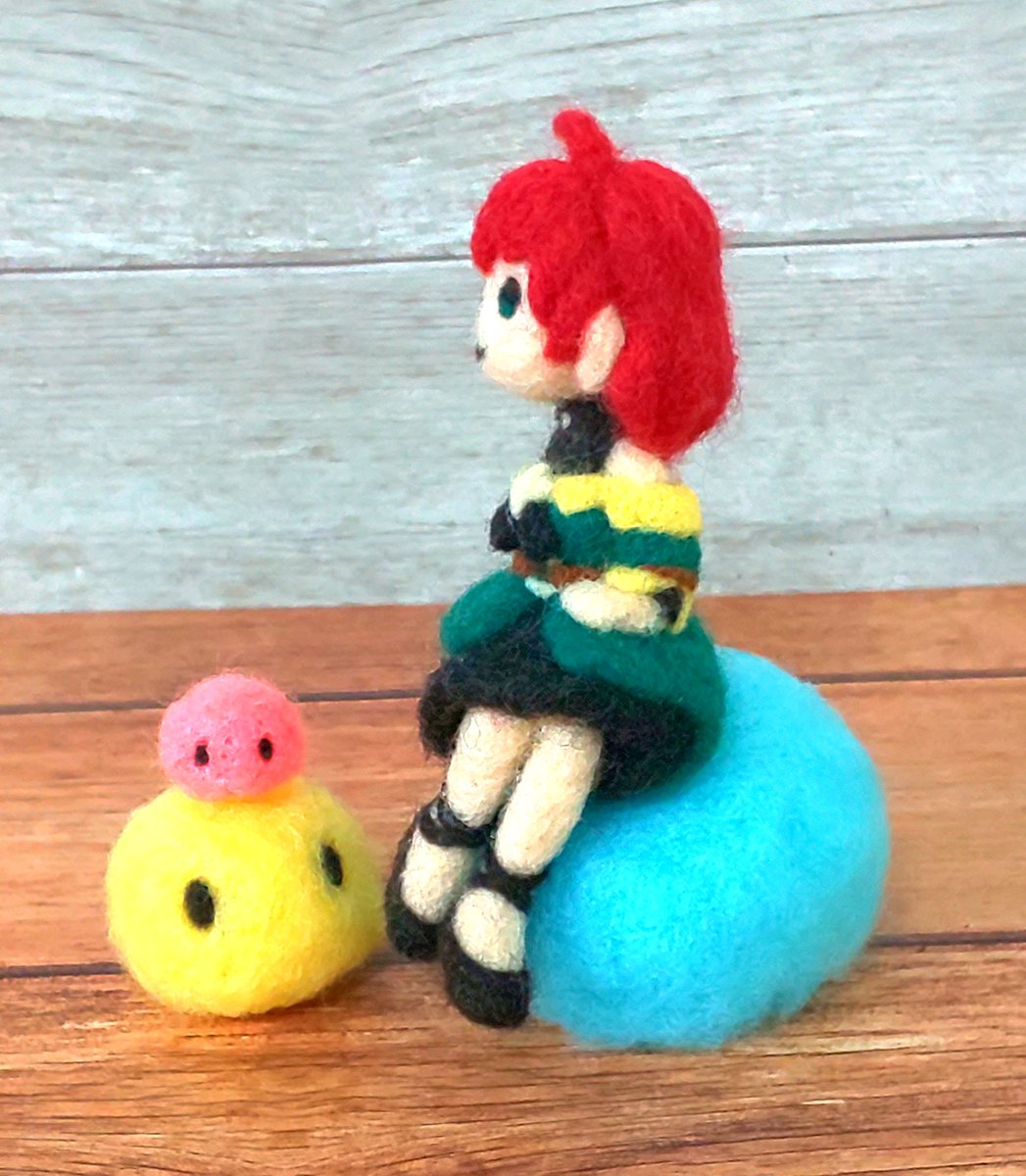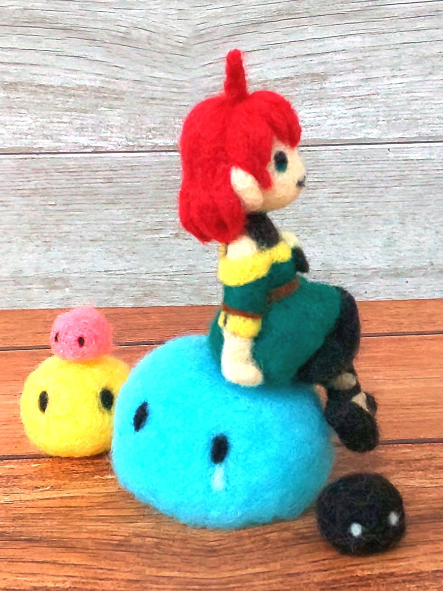 13 100 ダリヤさん withスライム(ノ・∀・)ノ できましたー #魔導具師ダリヤはうつむかない #羊毛フェルト 20/10/02 21:39