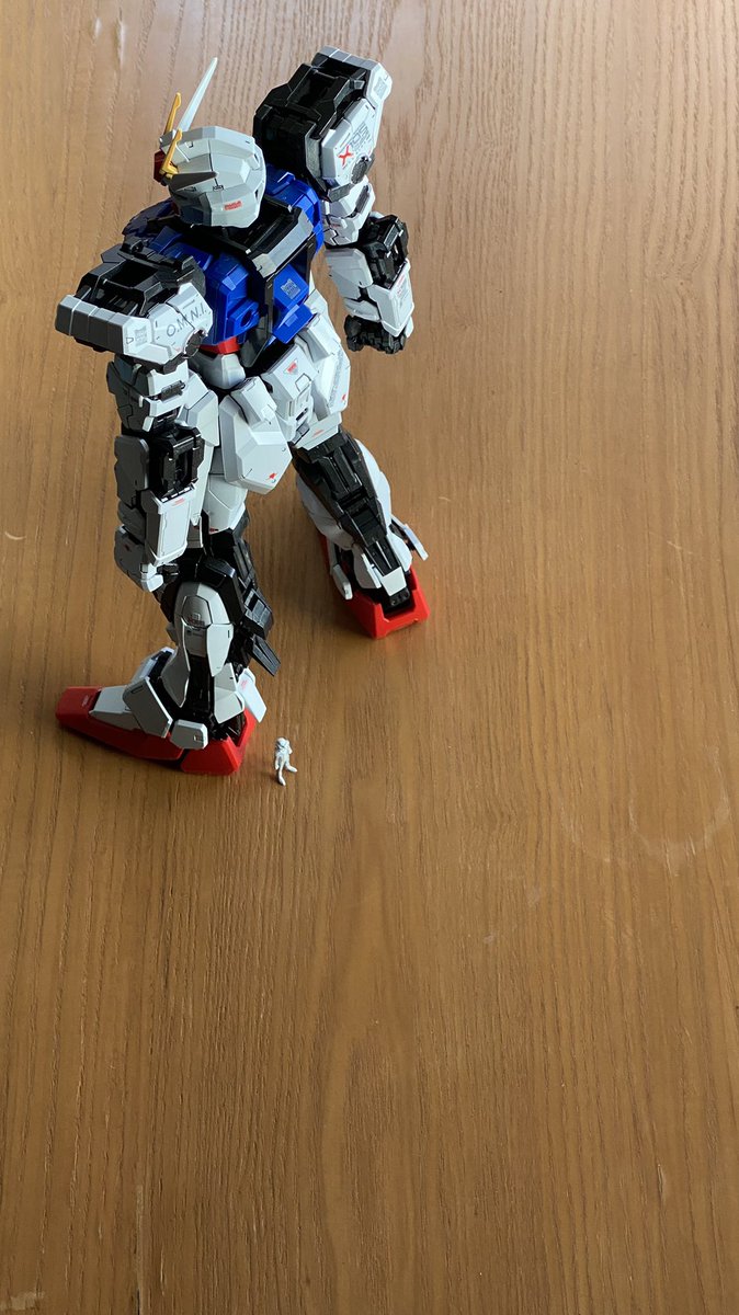 ストライクガンダムを下から煽って撮影しました。 被写体を大きく写すにはもっと研究が必要です。 #ガンプラの画像を貼るとRTされると聞いて #ガンダムSEED #ガンプラ好きな人と繋がりたい #ガンダムベース東京