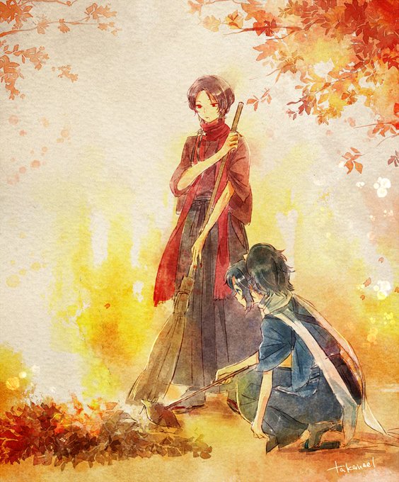 29 87 落ち葉を集めて焼き芋する男士 家事をする男士 スマホをいじる男士 とんがりコ○ンを指にはめる男士 #人間くさい刀剣男士が見られるタグ 21/04/11 06:07