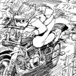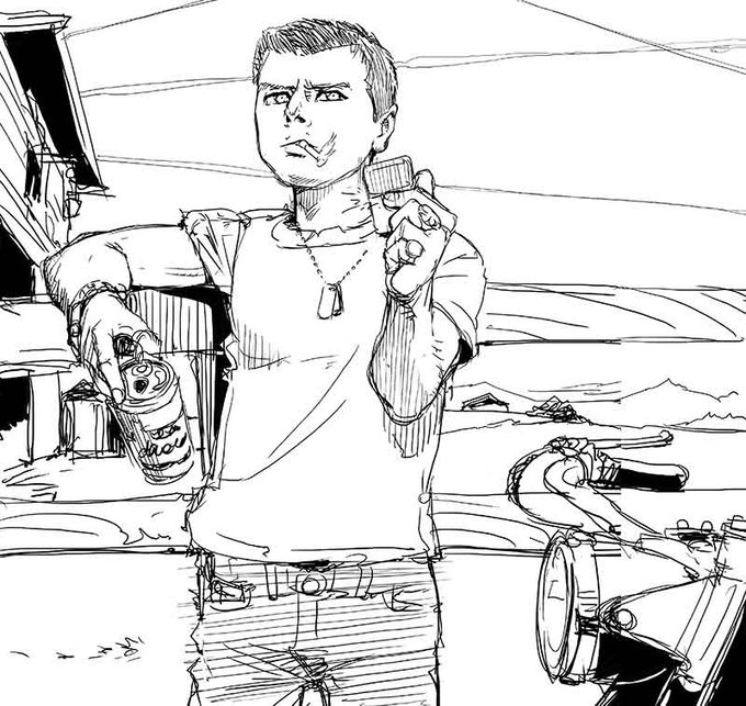 これはバイクはほぼ描いていないけど、'60年代アメリカ南部のコーカソイド青年を描きたくなり、イメージだけで描いてみた。飛行機雲がやたら多いイメージ。#バイクの日
