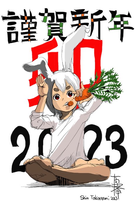 6 22 滑り込み、超テキトーに手癖で描いてみました。年賀ラクガキなんて10年以上ぶりか。昨年はこういうなんつうの、タヌキ眉毛みたいの流行りましたね。徳島移住、干支ひとまわりしちゃいましたよ。 23/01/03 22:48