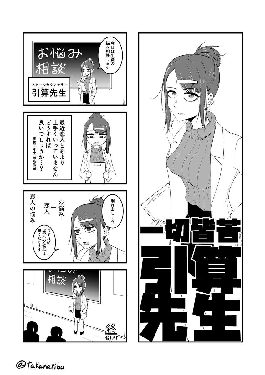 元々Twitter用漫画の予定だった 「一切皆苦引算先生」 うぇぶりの読み切り「二律背反引算先生」の元ネタ?です #オリジナル漫画