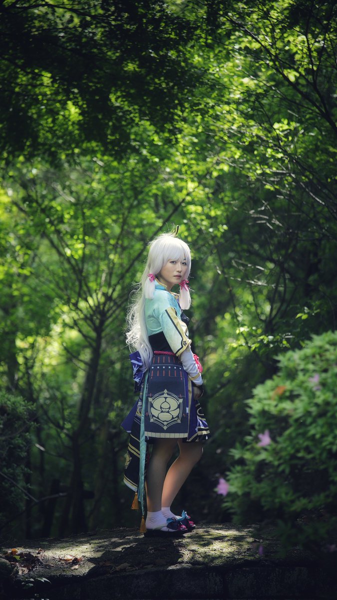 こすおん@十二周年で撮らせてもらいました。 場所をいろいろと変えたり撮りたいように撮らせてもらえて本当にありがたかった。 原神/神里綾華 まめたろさん(@DANBO_LUN) #こすおん