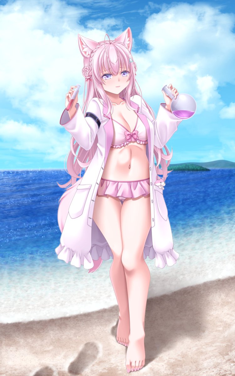 水着に白衣なんて許されるんですか!!!!!?(前に描いた水着絵の差分) 新衣装とてもよかったのでそちらの絵も描きたい描きます #こよりすけっち twitter.com/takanashi_tsks…