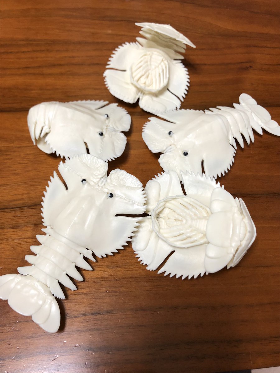 ウチワエビとりあえず白レジン版何個か作ったので欲しい人は買ってください。 haniwaya.cart.fc2.com 目玉は黒レジンです。 墨入れ版とカラーレジン版も作りたいですがいつになるかは分かりません。