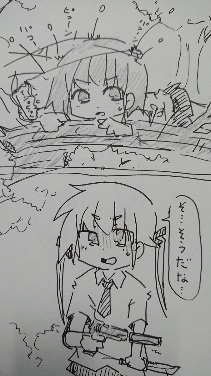 8 19 スナイパーにめちゃくちゃ撃たれてるのにびくともしないやすなに引くソーニャ落書き!! やすな『ここ、刺客いっぱいるね!隠れなきゃ!!』 ソーニャ『え?即死レベル弾丸だぞ!こいつ、人間か?』 #キルミーベイベー 21/05/10 16:11