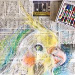 脳内解放らくがきタイム。 1時間で何枚かけるかなキャンペーン。 ちょっとオーバーして1時間10分で3枚。 ダイソーのオイルパステルで古新聞にらくがき。 究極の節約アートだ!? #doodle #oilpastel #oilpasteldrawing #ダイソー #オイルパステル #古新聞