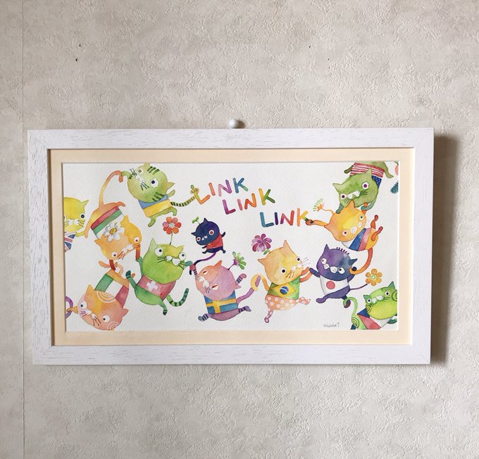 本日のお引越し🐈⬛🐈🐈⬛🐈🐈⬛ ご購入いただきありがとうございました。 _/\○_[感謝状]💖 『国境なき猫王国』 今、思うことを描いた、最近の作品です。 お楽しみいただけますように。 #watercolor #watercolorpainting #水彩 #猫 #ネコ #peace