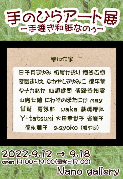 『手のひらアート展 手漉き和紙なのぅー』 WEB展示販売も始まりました。 スゴイコトデキルンデスネ!👀✨ nano-gallery.shop-pro.jp/?mode=cate&cbi… #水彩 #オイルパステル @Nano_Gallery