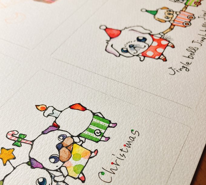 Wishing you a Merry Christmas 🎄💖 皆さま、ステキなクリスマスをお迎えください。 今年、描くだけ描いて、日の目を見なかったぶひーずがお送りしました。 #pug #pekingese #Christmas2022 #パグ #ペキニーズ #水彩 #watercolor