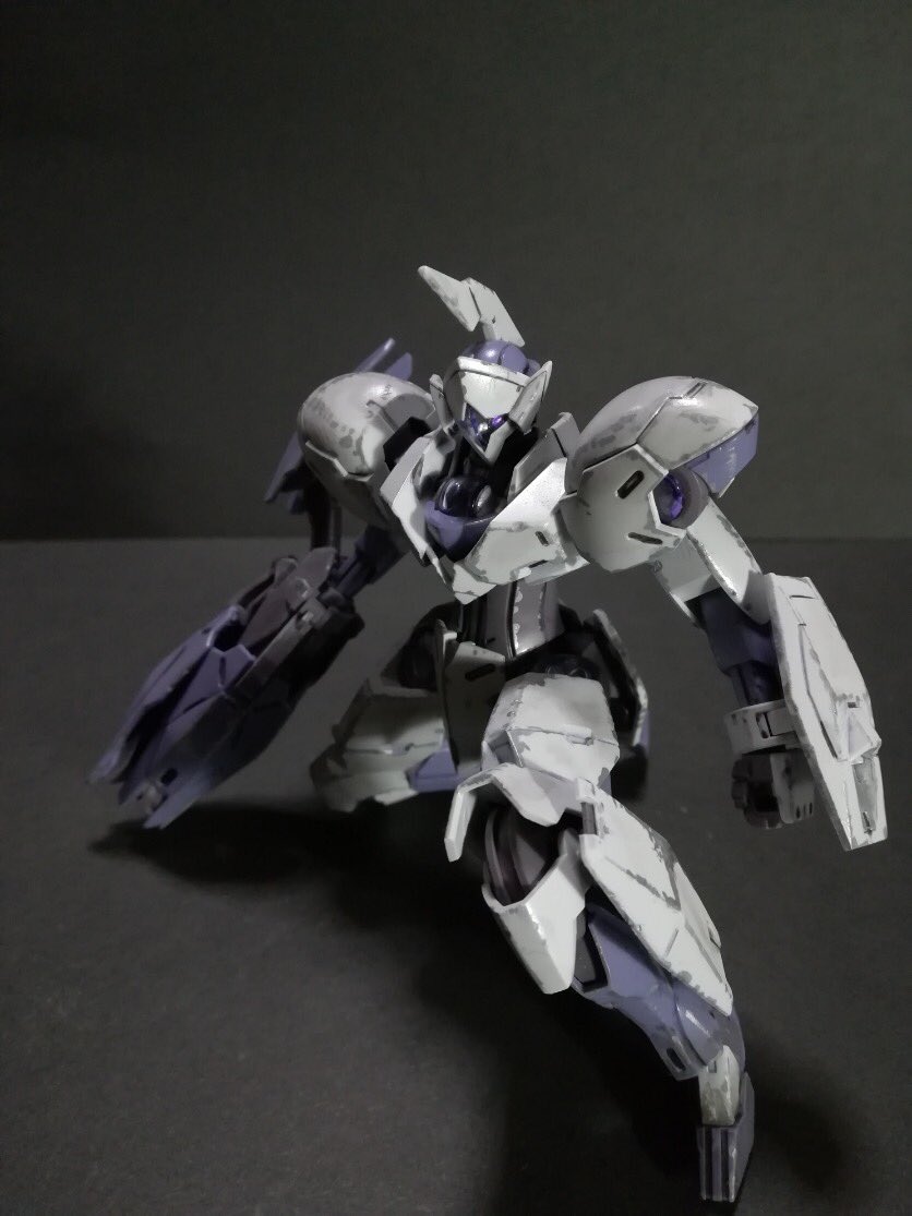 #水星の魔女Noガンダム祭 #ガンプラ ミカエリスで参戦! あと一歩踏み出せた世界線のシャディクのイメージで。 あの無敗のディランザに何度でも挑む、みたいな。 棒ヤスリと部分塗装でダメージ表現に挑戦してみました。 時間なくてガンダムマーカーに頼りましたが…筆に近くて楽しいですね、コレ。