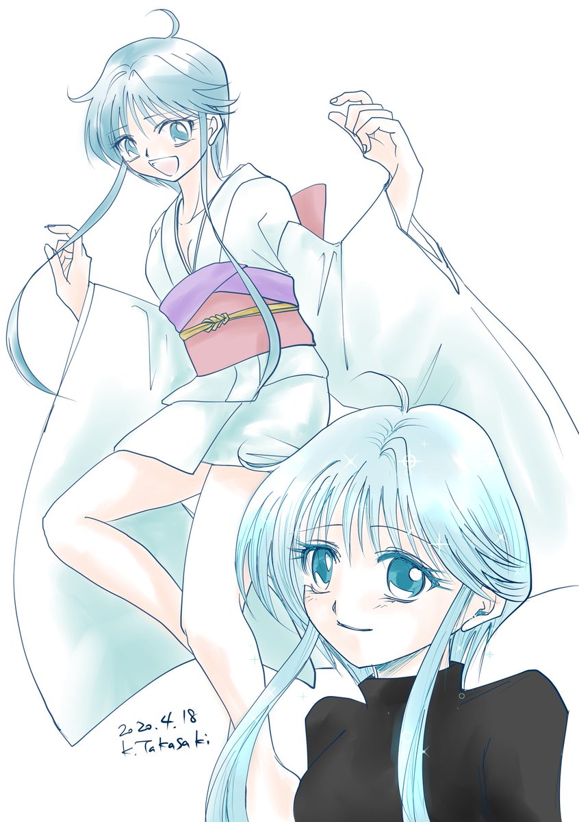 以前、合うキャラを教えてもらうタグで魔法騎士レイアースの光ちゃんとエメロード姫を描いていたので、せっかくなので海ちゃんと風ちゃんも描きました twitter.com/takasaki2151/s…