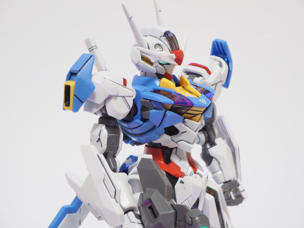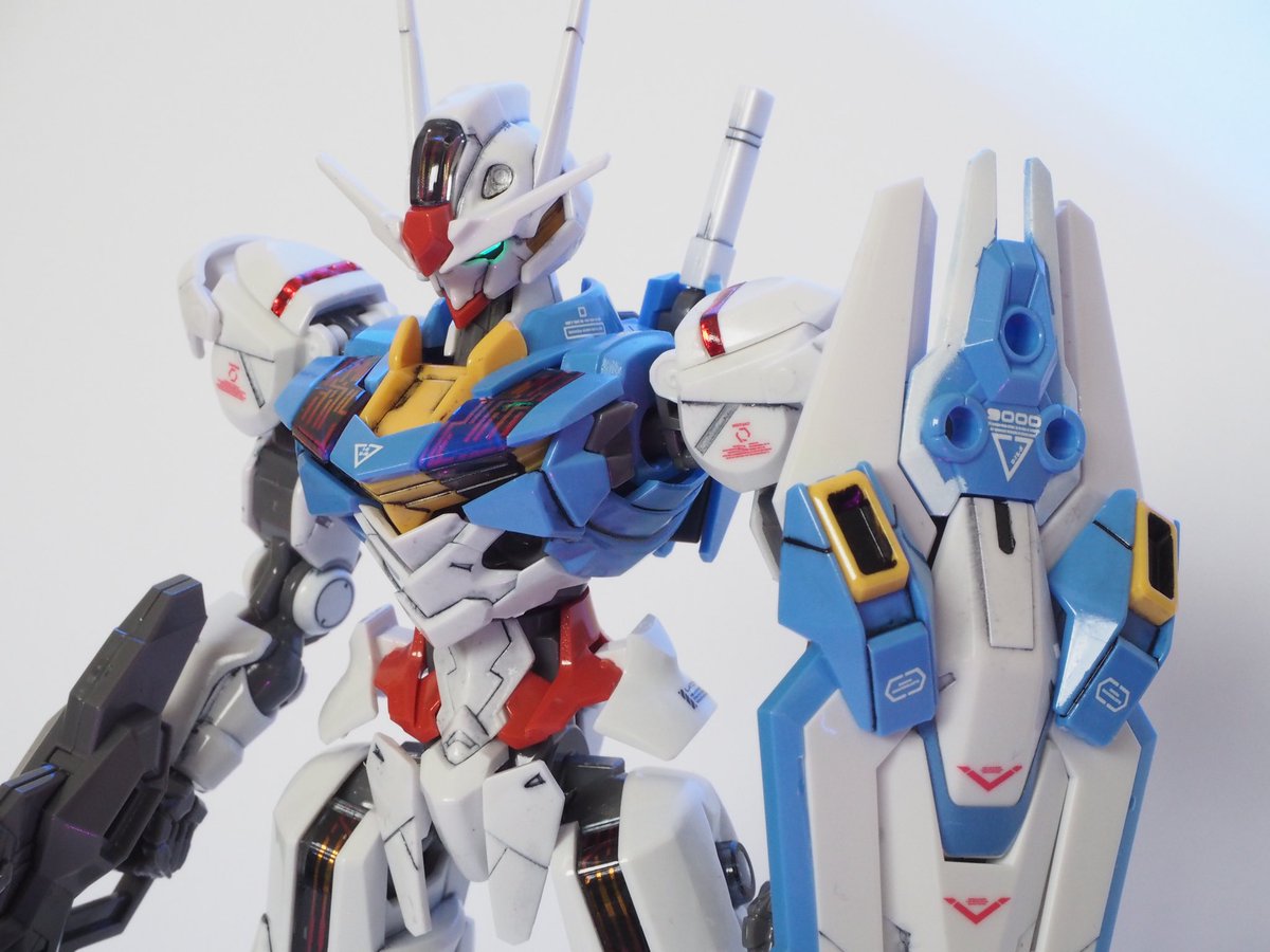 HG ガンダムエアリアル(改修型) 素組みでも色分け良いなぁと思ったけど、さらに塗り分けたらもっと良くなるという予想は当たりました🎯 ガンビットライフルの迫力、良きです🙆♀️ 久しぶりに目は蛍光にしました👍 #ガンプラ #ガンプラの画像貼るとRTされると聞いて #水星の魔女
