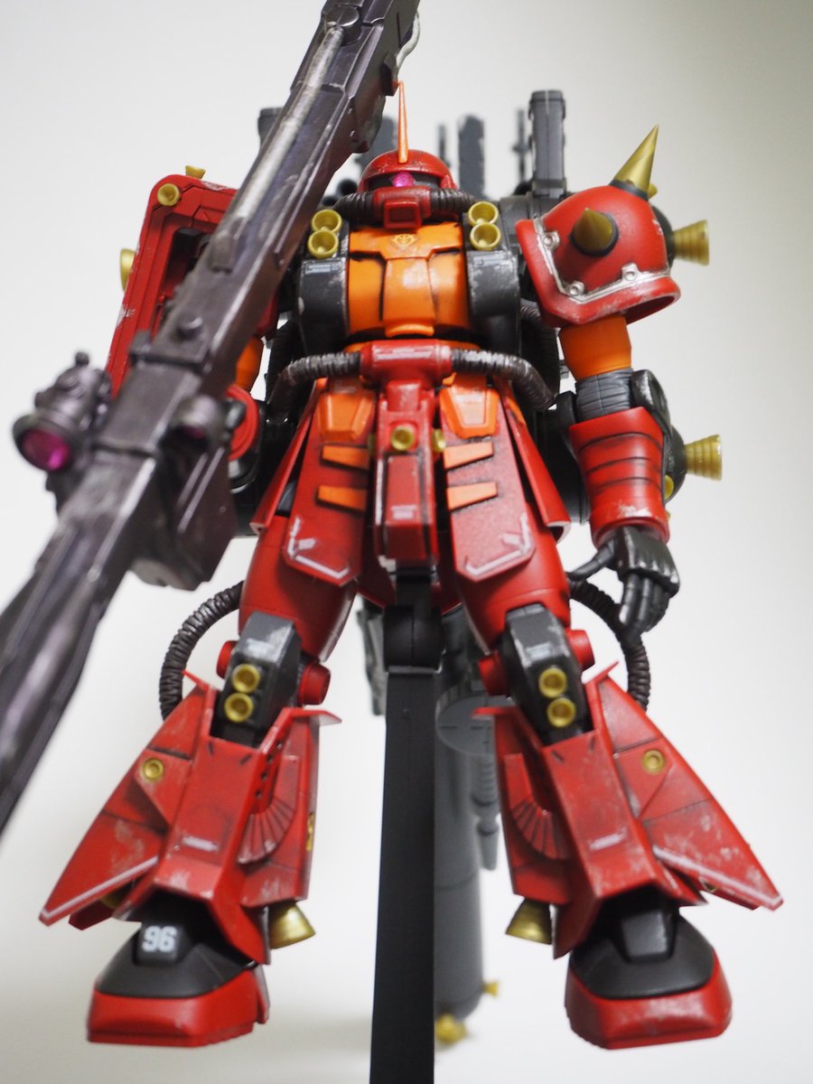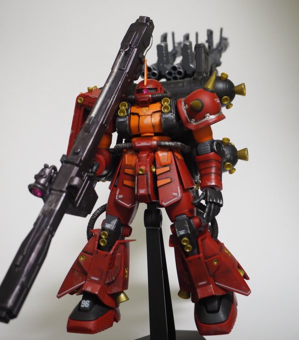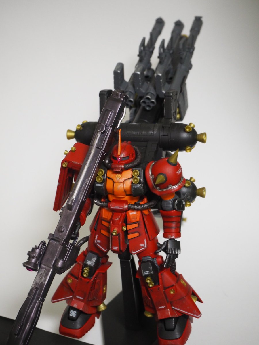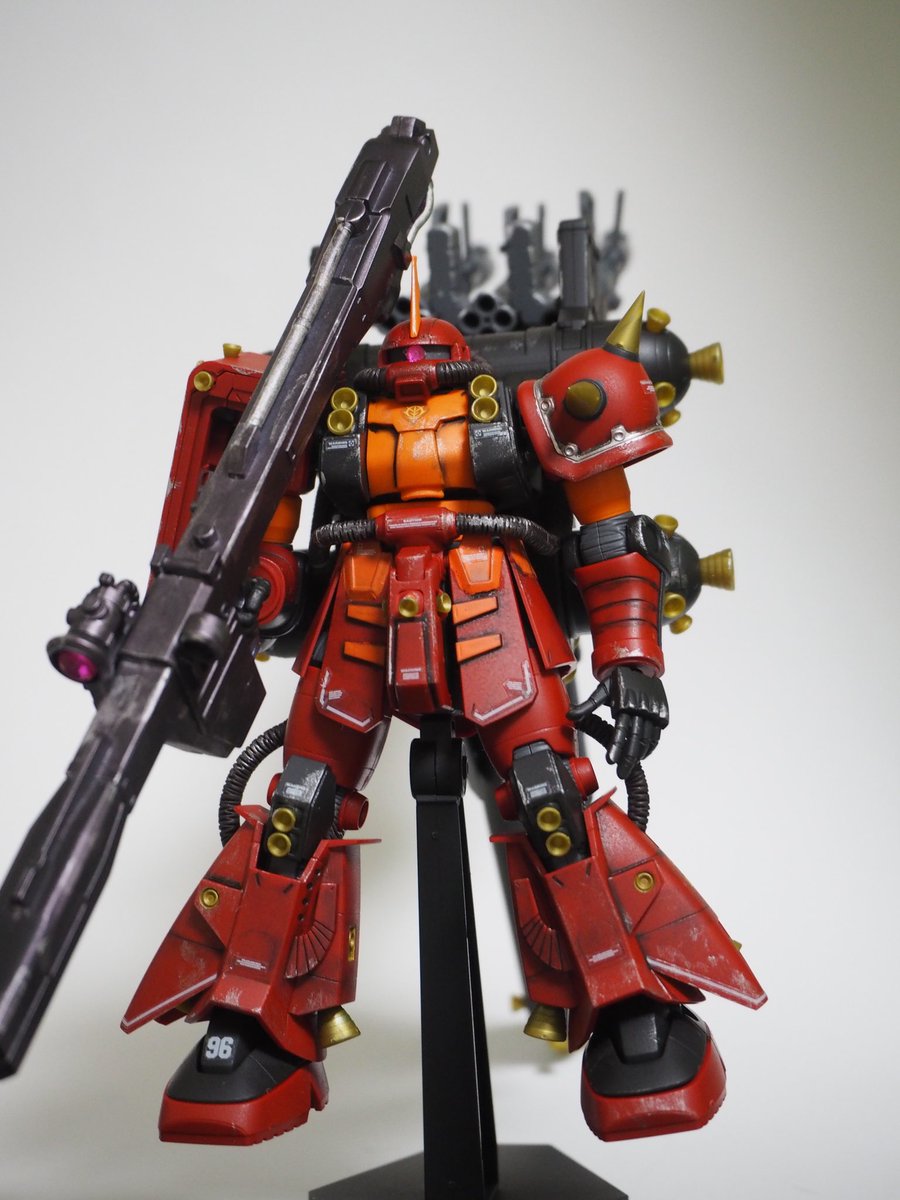 HG 高機動型ザク(サイコザク) ジャンクの中にビームバズーカがあったので、フル装備バージョンで仕上げることができました✨ サンボルキットは色が入ると一気に映えます✨ #ガンプラ #サンダーボルト #ガンプラの画像貼るとRTされると聞いて