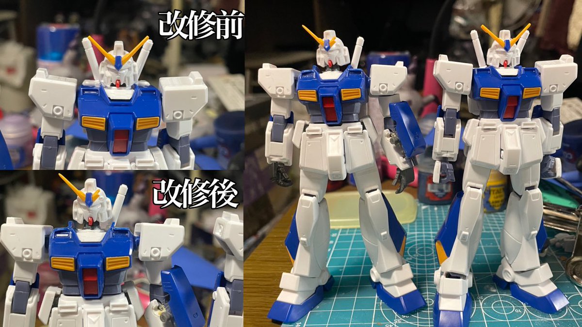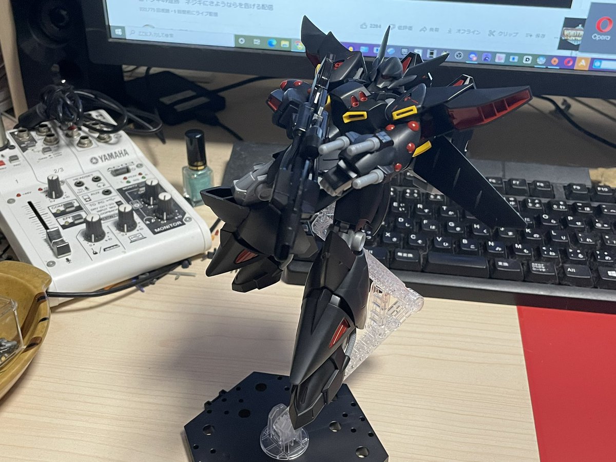 ある程度完成しました! 合わせ目とか、えぐかったけど、神ヤスリでガリガリ削りました。 黒サフして、傷とか見ようかなと思いつつ、チェーンマイン食らった直後だから多少の傷もありかなとおもいましたw #ガンプラの画像貼るとRTされると聞いて #ガンプラ好きな人たちと繋がりたい #ガンプラ改造